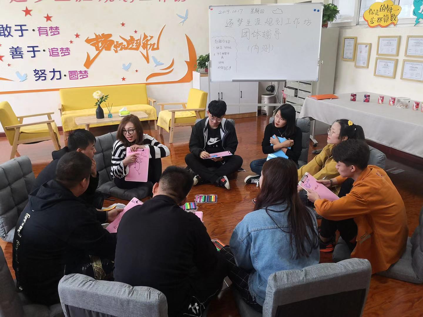 就像我们所成立的逐梦生涯规划工作坊一样,我们的标语是敢于有梦,善于追梦,努力圆梦。